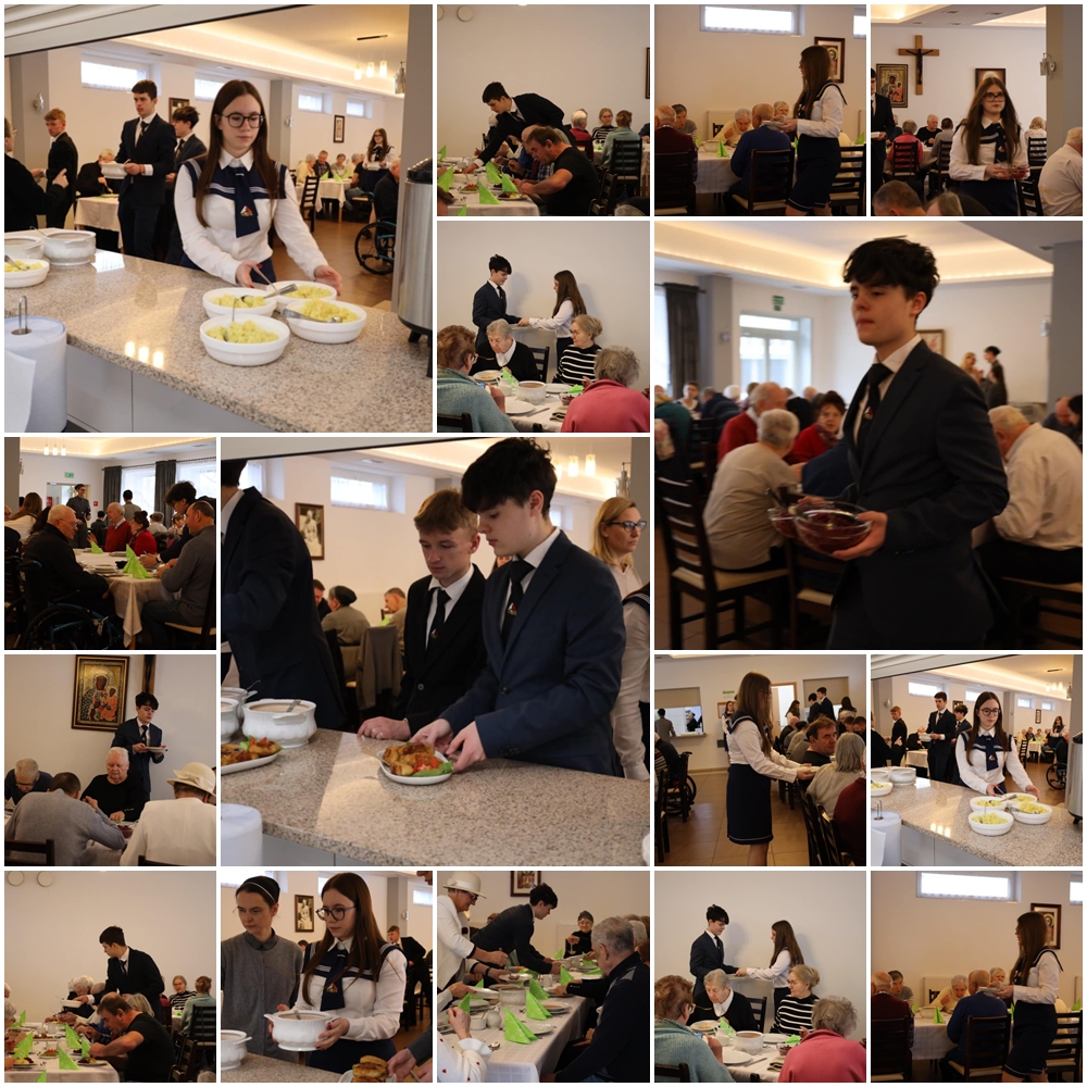 Młodzi, eleganccy, uśmiechnięci, pomocni, delikatnie i z uważnością pochylający się nad naszymi Gośćmi - osobami starszymi i chorymi, które 11 lutego, w Światowym Dniu Chorego, mają swoje święto. Oto grupa projektowa "Pokolenia razem", działająca w ramach praktycznej olimpiady "Zwolnieni z Teorii".